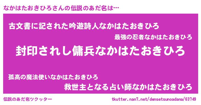 | ヒーロー風カッコイイあだ名 | 『スーパーナカハタオキヒロ』 |