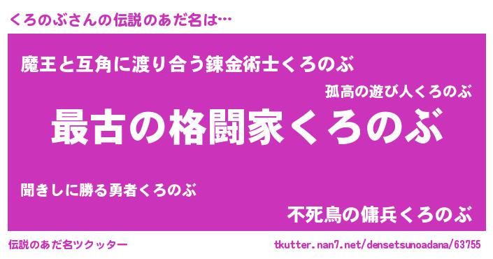 | 意味不明あだ名 | 『くろのぶフォーエバー』『自称くろのぶ』 |