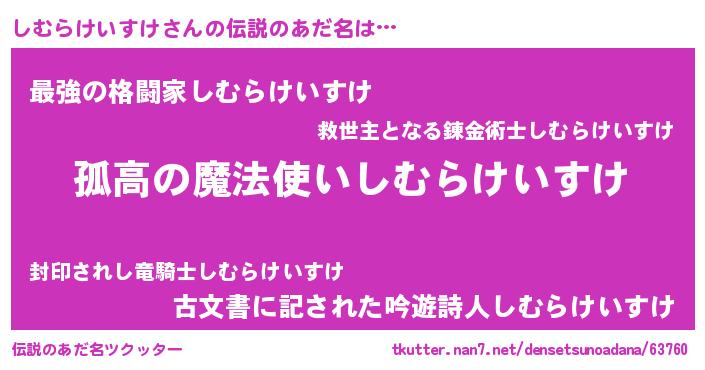 | 男性向けラノベタイトル風あだ名 | 『ダンジョンにしむらけいすけを求めるのは間違っているだろうか』 |