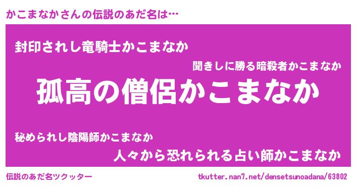 | 胡散臭い通販商品みたいなあだ名 | 『ガンによく効くアガリクス…その名も「かこまなか」』 |