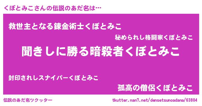 | 意味不明あだ名 | 『永久保存くぼとみこ』 |