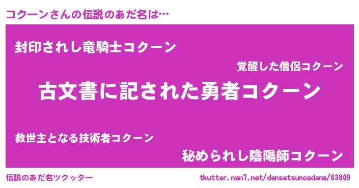| ファンタジー風あだ名 | 『コクディッシュ』『コクフェル』 |