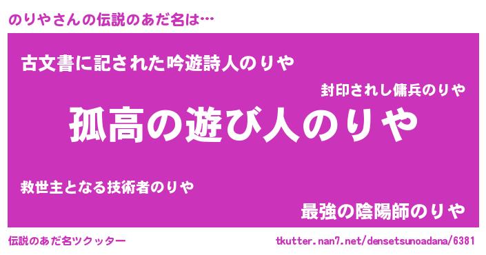 | ヒーロー風カッコイイあだ名 | 『魔戒騎士ノリ』『究極戦士ノリヤ』 |
