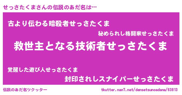 | ヒーロー風カッコイイあだ名 | 『慈愛の使者せっさたくま』 |