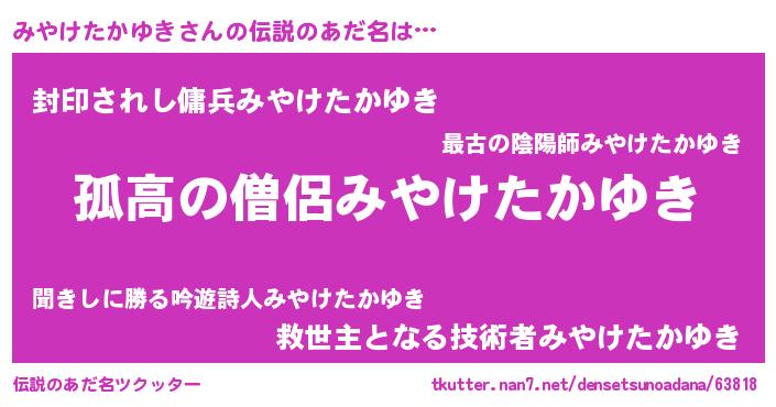 | 意味不明あだ名 | 『自称みやけたかゆき』 |
