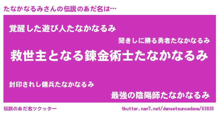 | 男性向けラノベタイトル風あだ名 | 『うちのたなかなるみが世界を掌握している!』 |