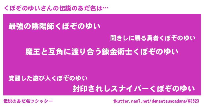 | 女子向けラノベタイトル風あだ名 | 『くぼぞのゆい恋絵巻』 |