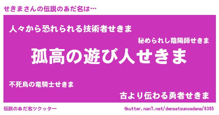 | ヒーロー風カッコイイあだ名 | 『暗黒騎士セキ』『友情の使者せきま』 |