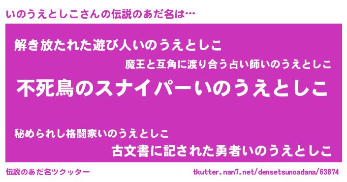 | ヒーロー風カッコイイあだ名 | 『仮面イノダー』『天弓騎士イノ』 |