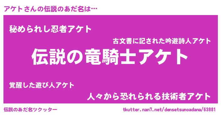 | ヒーロー風カッコイイあだ名 | 『スーパーアケト』『仮面アケダー』 |