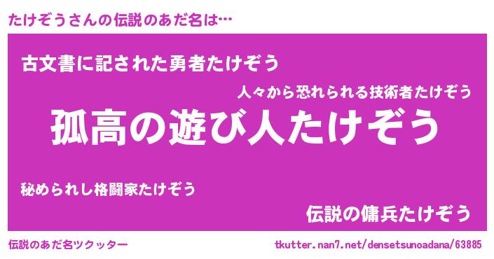 | ヒーロー風カッコイイあだ名 | 『黄金騎士タケ』『ネオタケゾウ』 |