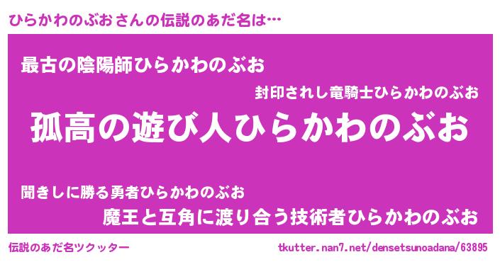 | 肩書あだ名 | 『ひらかわのぶお上級大将』 |