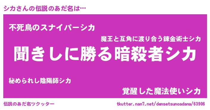 | 胡散臭い通販商品みたいなあだ名 | 『絶対に幸福をもたらす健康食品…その名も「シカ」』 |