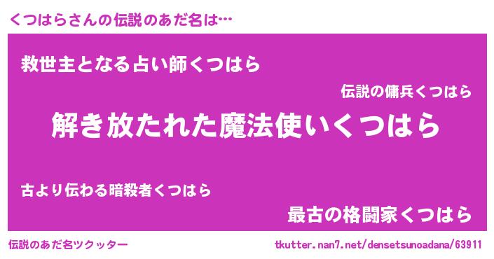 | 意味不明あだ名 | 『自称くつはら』『くつはらフォーエバー』 |