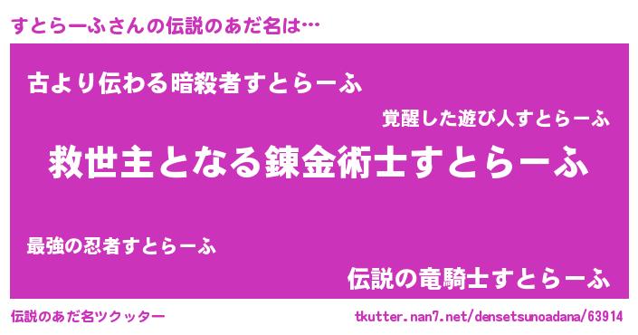 | ヘコむあだ名 | 『すとらーふ(震え声)』『すとふぇ~』 |
