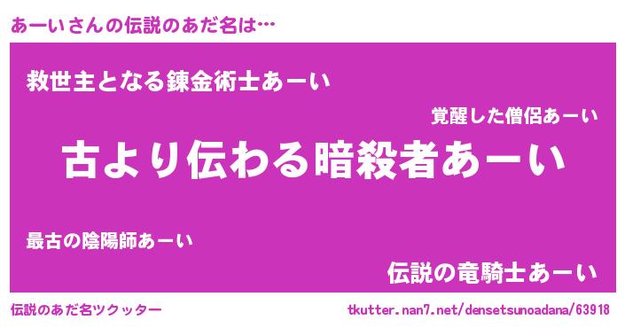| 男性向けラノベタイトル風あだ名 | 『魔弾の王とあーい』『アーイスレイヤー』 |