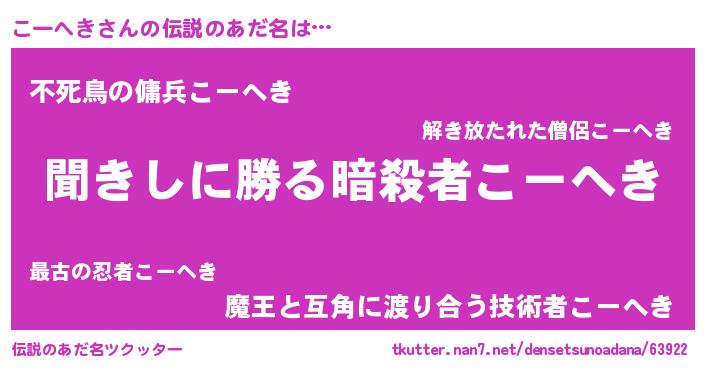 | 胡散臭い通販商品みたいなあだ名 | 『絶対に幸福をもたらす健康食品…その名も「こーへき」』 |