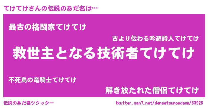 | ヒーロー風カッコイイあだ名 | 『仮面テケダー』『超時空戦士テケテケ』 |