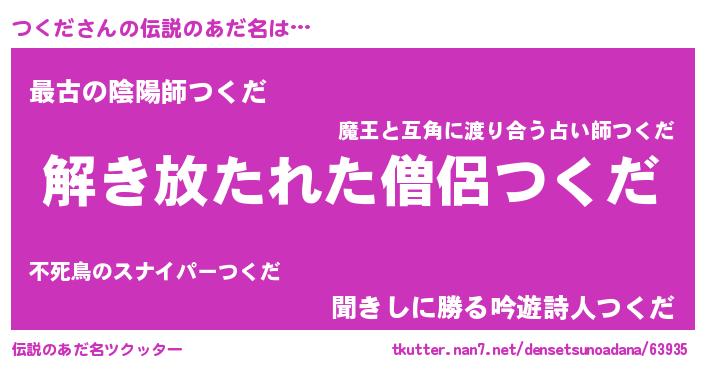 | 意味不明あだ名 | 『自称つくだ』『とにかく怪しいつくだ』 |