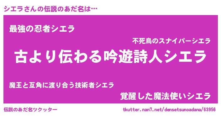 | ヒーロー風カッコイイあだ名 | 『仮面シエダー』『ウルトラ戦士シエラ』 |
