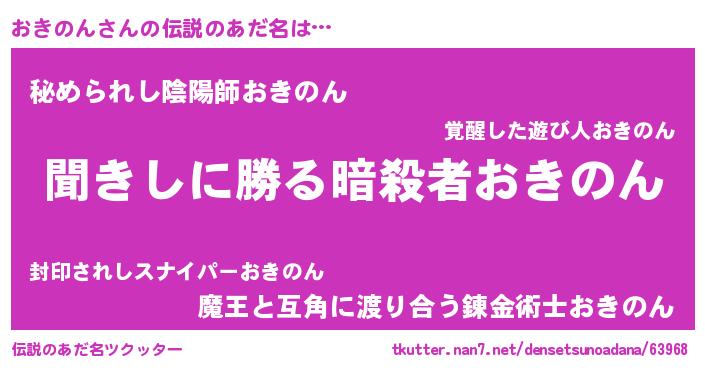 | 意味不明あだ名 | 『自称おきのん』『永久保存おきのん』 |
