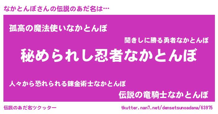 | 意味不明あだ名 | 『住所不定無職なかとんぼ(50歳)』 |
