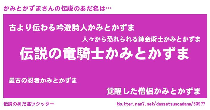 | ヒーロー風カッコイイあだ名 | 『スーパーカミトカズマ』『幻影騎士カミ』 |