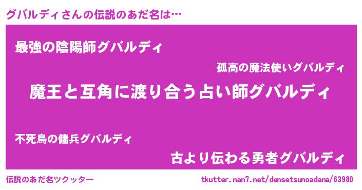 | 意味不明あだ名 | 『自称グバルディ』『永久保存グバルディ』 |