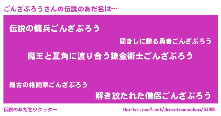 | 男性向けラノベタイトル風あだ名 | 『ノーゲーム・ノーゴンザブロウ』 |
