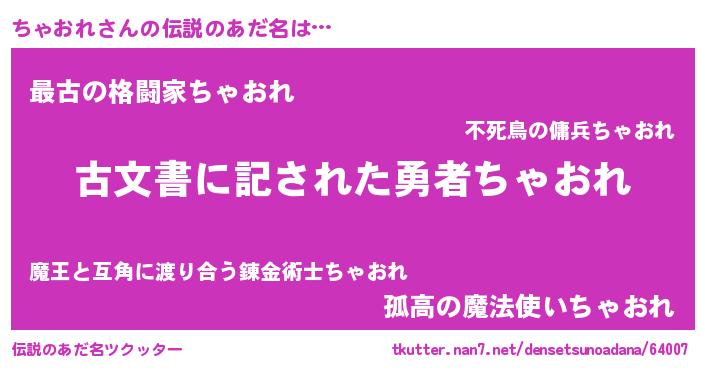 | 胡散臭い通販商品みたいなあだ名 | 『あなたにだけ特別に提供する世界で10本だけ現存している希少なブランデー…その名も「ちゃおれ」』 |