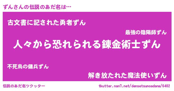 | 女子向けラノベタイトル風あだ名 | 『ずんが死なない童話 林檎のずんの診療簿』 |