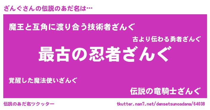 | ヒーロー風カッコイイあだ名 | 『ウルトラざんぐマン』『愛の使者ざんぐ』 |
