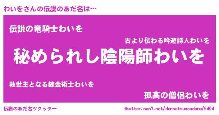 | ヒーロー風カッコイイあだ名 | 『ウルトラわいをマン』『スーパーワイヲ』 |