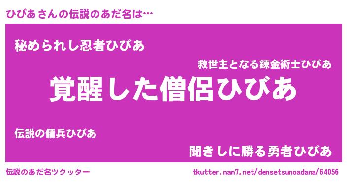| 男性向けラノベタイトル風あだ名 | 『ひびあの嫁は女の子じゃないと思った?』 |