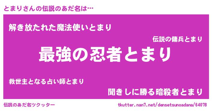 | 意味不明あだ名 | 『とまりフォーエバー』『永久保存とまり』 |