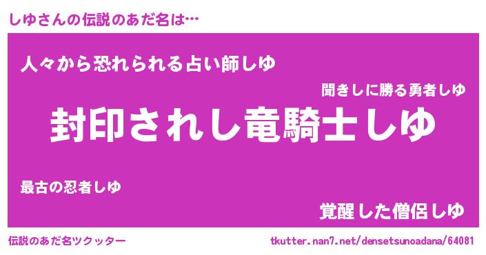 | ヒーロー風カッコイイあだ名 | 『究極戦士シユ』『スーパーシユ』 |