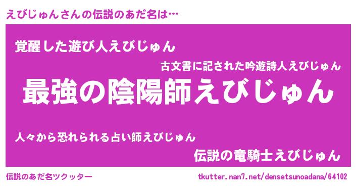 | 女子向けラノベタイトル風あだ名 | 『えびじゅんの婚約者』『闇のえびじゅん』 |