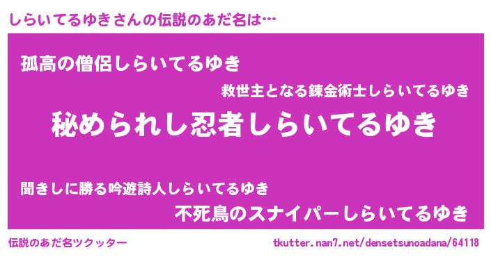 | 意味不明あだ名 | 『しらいてるゆきフォーエバー』 |