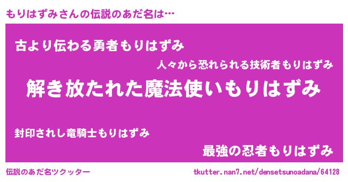 | ヒーロー風カッコイイあだ名 | 『仮面モリダー』『魔戒騎士モリ』 |
