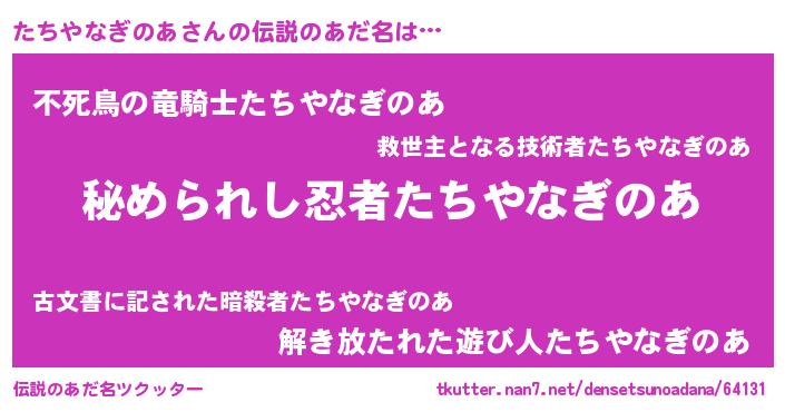 | 意味不明あだ名 | 『住所不定無職たちやなぎのあ(41歳)』 |