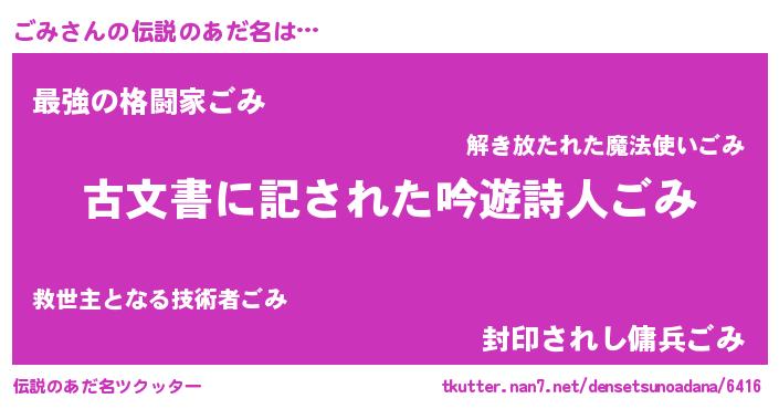 | ファンタジー風あだ名 | 『ゴミディッシュ』『ユリゴミヴァット』 |