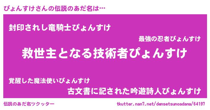 | ヒーロー風カッコイイあだ名 | 『天空の使者ぴょんすけ』『仮面ピョダー』 |