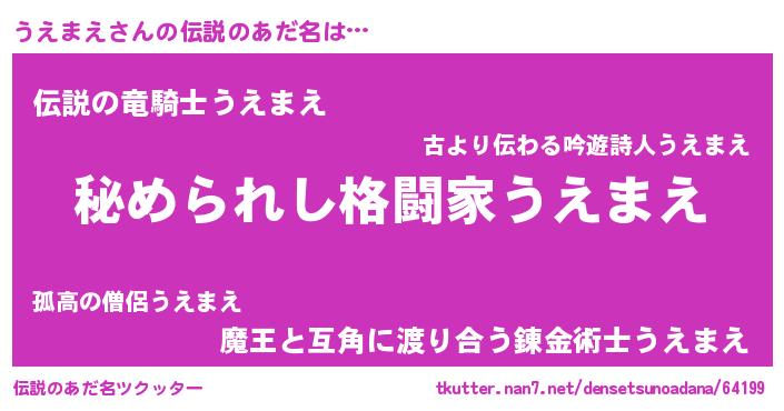 | 男性向けラノベタイトル風あだ名 | 『緋弾のウエマエ』『ウエマエスレイヤー』 |