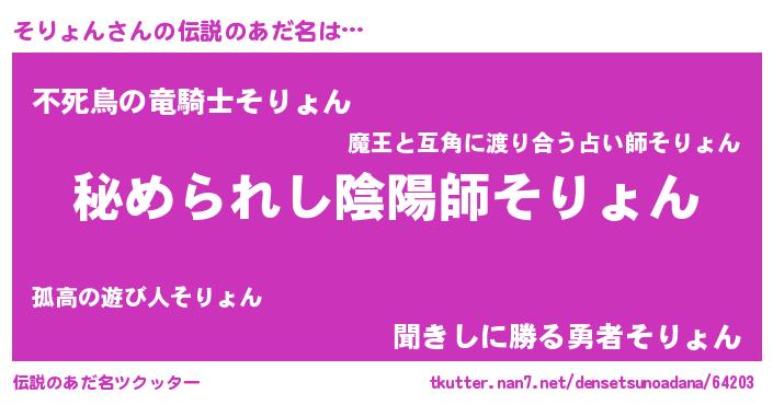 | 意味不明あだ名 | 『自称そりょん』『そりょんフォーエバー』 |