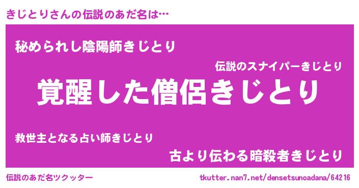 | ヒーロー風カッコイイあだ名 | 『最強戦士キジトリ』『黄金騎士キジ』 |