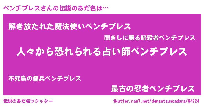 | 男性向けラノベタイトル風あだ名 | 『ベンチプレススレイヤー』 |