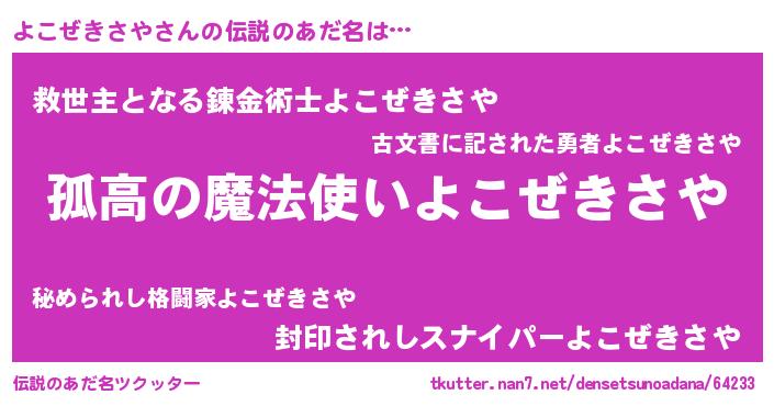 | 意味不明あだ名 | 『とにかく怪しいよこぜきさや』 |