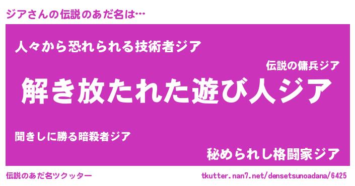 | ヒーロー風カッコイイあだ名 | 『サイバー戦士ジア』『魔戒騎士ジア』 |