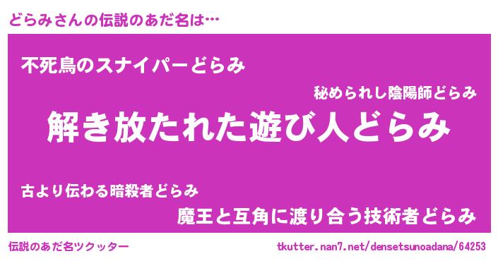 | 男性向けラノベタイトル風あだ名 | 『転生したらどらみだった件』 |