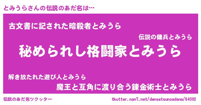 | 意味不明あだ名 | 『とみうらフォーエバー』『自称とみうら』 |